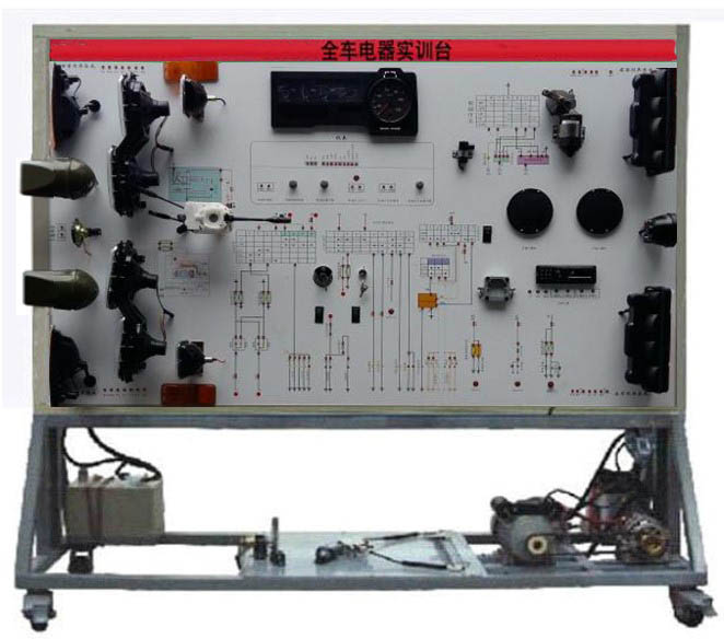二、功能特點(diǎn) 1.真實(shí)可運(yùn)行的汽車整車電器系統(tǒng),充分展示汽車整車電器系統(tǒng)的組成結(jié)構(gòu)。 接通電源,操縱示教板上的各種電器開(kāi)關(guān)、按鈕、真實(shí)演示汽車儀表系統(tǒng)、燈光系統(tǒng)、雨刮系統(tǒng)、喇叭系統(tǒng)、發(fā)動(dòng)機(jī)電器系統(tǒng)、起動(dòng)系統(tǒng)和充電系統(tǒng)等汽車電器各系統(tǒng)的工作過(guò)程。 2.設(shè)備面板采用耐創(chuàng)擊、耐污染、防火、防潮的高級(jí)鋁塑板,表面經(jīng)特殊工藝噴涂底漆處理;面板打印有不會(huì)褪色的彩色電路圖;學(xué)員可直觀對(duì)照電路圖和實(shí)物,認(rèn)識(shí)和分析汽車整車電器各系統(tǒng)的工作原理。 3.示教板面板上安裝有檢測(cè)端子,可直接在面板上檢測(cè)汽車整車電器各系統(tǒng)電路元件的電信號(hào),如電阻、電壓、電流、頻率信號(hào)等。 4.設(shè)備面板部分采用面板部分采用1.5mm冷板沖壓成形結(jié)構(gòu),外形美觀;底架部分采用鋼結(jié)構(gòu)焊接,表面采用噴涂工藝處理,帶自鎖腳輪裝置。 三、技術(shù)規(guī)格 外形尺寸(約):2080×700×1900mm(長(zhǎng)×寬×高) 動(dòng)力電源:三相四線(或三相五線)380V±10% 50Hz 工作電壓:直流12V 工作溫度:-40℃~+50℃ 三相異步電動(dòng)機(jī) 型 號(hào):YT 100L1-4 電壓:AC 220V/380V 功率:2.2KW 轉(zhuǎn)速:1420r/min 顏色:7032 鋼管:40*40*3mm 機(jī)柜:1.5mm冷板沖壓成形,背面設(shè)置維修門; 移動(dòng)腳輪:100*60mm