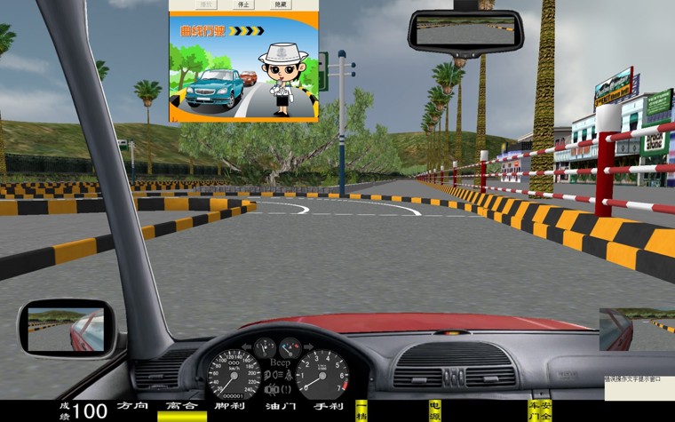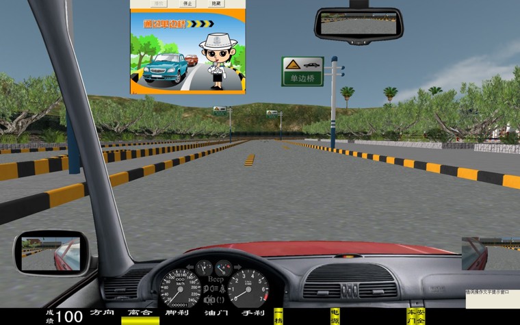 華育寬頻 HYM-9 型汽車駕駛模擬器是一種 80 度視角配 22 寸液晶彩顯的多功能新一代的主被動式汽車駕駛模擬器。它突破了原來在行駛十字路口向左拐的視線盲區(qū),行起車來更加方便逼真, 從而清楚的觀察車輛與路面的位置關(guān)系。是目前市場上絕對最新版的汽車駕駛模擬器軟件。 一、界面顯示 新增加 有: 轉(zhuǎn)向、 油門、 剎車、 離合器深淺進度; 檔位、 訓(xùn)練成績, 后視鏡(左、右、中)、 場景地圖顯示; 界面儀表盤上顯示有: 車速表、 發(fā)動機轉(zhuǎn)速表、 大燈、(遠光燈、近光燈、視寬燈)、 轉(zhuǎn)向燈、 安全帶提示燈、 車門關(guān)閉提示燈、 機油燈、 電瓶警告燈等。 在訓(xùn)練過程中、通過雙擊鼠標、可實現(xiàn)正視和俯視圖像駕駛之間切換。 三、本模擬系統(tǒng)界面里不同車型之間自由轉(zhuǎn)換,其車型有: 小轎車、 吉普車、 無級變速車(自動檔)、 農(nóng)用車、 大貨車、 大客車、 (車型等多達六種學(xué)員可以在模擬器上體會不同車型的駕駛體會與樂趣) 四、學(xué)員可以根據(jù)自己駕駛的熟練程度選項訓(xùn)練,分三級訓(xùn)練,即 1 、初級駕駛; 2 、中級駕駛; 3 、高級駕駛訓(xùn)練: 初級駕駛訓(xùn)練 :初級駕駛可分為六種車型和三種練習方法,即 1 、被動駕駛; 2 、原地訓(xùn)練; 3 、簡易道路等訓(xùn)練 中級駕駛訓(xùn)練 :可選擇場景內(nèi)的相應(yīng)功能訓(xùn)練:車輛的數(shù)量、車型、道路、天氣等。 高級駕駛訓(xùn)練 :可選車輛的數(shù)量、車型、道路、天氣及 交通部規(guī)定的九項專項訓(xùn)練 即: 1 通過連續(xù)障礙、 2 通過單邊橋、 3 直角轉(zhuǎn)彎、 4 側(cè)方位停車、 5 上坡定點停車與坡道起步、 6 限速通過限寬門、 7 百米 加減檔、 8 起伏路駕駛、 9 曲線行駛等 。場景內(nèi)最多可達 60 輛其他車輛,達到模擬逼真的交通流狀況。 訓(xùn)練氣候 面有:“
