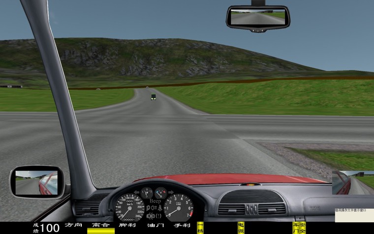 炫目訓(xùn)練” “白天”、“雪天”、“霧天”、“雨天”、“黑夜”,體會不同天氣狀況下的駕駛特點(例如,晴天炫目道路訓(xùn)練有早上及傍晚的炫目駕駛;雪天路面極滑;霧天視線極其不好;夜間駕駛會車時要遠近燈光的切換等)。 學(xué)生駕駛艙 座機由駕駛座、視屏彩電、汽車五大操作系統(tǒng)、核心計算機、高級進口傳感器、數(shù)據(jù)采集板等組成,各操作部件通過傳感器,經(jīng)數(shù)據(jù)傳感板傳輸。 駕駛模式 被動式:被動式駕駛適用于初學(xué)的學(xué)員,學(xué)生可以按照電腦語音提示進行規(guī)范的操作練習。 主動式:主動式駕駛與實際車輛相同。 功能 主視屏:顯示駕駛前方道路與周圍路況、使學(xué)生能感覺身在駕駛室操作著運行中的汽車。并顯示檔位、成績分數(shù)。 后視鏡:能達到與真車相同的模擬效果?缮。 模擬儀表:顯示車速、里程、發(fā)動機轉(zhuǎn)速。并且可自行決定關(guān)閉或開啟。 特殊功能:通過鼠標操作可由正常駕駛室駕駛模式切換到以府視式駕駛模擬 . 訓(xùn)練場景科目: ⑴ 一般道路; ⑵ 高速公路; ⑶ 城市道路;(包括:行人、自行車、其它車輛、雙黃線、崗?fù)、警察、紅綠燈、轉(zhuǎn)盤、交通標志標線等。) ( 4 )炫目道路 ( 5 )泥濘道路 ( 6 ) 山區(qū)道路; ( 7 ) 曲線穿樁、場地倒庫; ( 8 )“ 8 ”字型路; ( 9 ) 直角彎路、十字路口、丁字路口、匝道等。 ( 10 ) 蛇形路; ( 11 ) 就位停車; ( 12 ) 順行停車; ( 13 )雙邊橋; ( 14 )單邊橋; ( 15 )單凸橋; ( 16 )橫斷橋; ( 17 )騎越障礙; ( 18 )立交橋; ( 19 )隧道。 天氣 一般道路可選擇四種天氣:白天、雪天、霧天、雨天、黑夜。 畫面選擇 可以選擇“打開”或“關(guān)閉”:后視鏡、向?qū)У貓D、錯誤提示、成績等。 其它車輛選擇 各道路分 4 種數(shù)目選擇: 3 至 60 輛。 車型選擇 在訓(xùn)練中有六種車型:小轎車、吉普車、無級變速車(自動檔)、大貨車、大客車、農(nóng)用車等。 汽車模擬技術(shù) 汽車多自由度數(shù)學(xué)模型,實現(xiàn)汽車轉(zhuǎn)向、制動和加速的逼真模擬。 測試調(diào)整功能 傳感器測試:方向機的測試、離合器的測試、油門的測試、制動器的測試(腳剎)、手制動的測試、變速器各檔位的測試、鳴號、點火、開鎖。只要打開測試界面便一目了然。并可作學(xué)員操作曲線學(xué)仿 第二節(jié) 汽車駕駛模擬器軟件技術(shù)指標 ● 軟件增加 ※界面儀表盤上顯示有: 車速表、發(fā)動機轉(zhuǎn)速表、大燈、(遠光燈、近光燈、視寬燈)、轉(zhuǎn)向燈、安全帶提示燈、車門關(guān)閉提示燈、警告燈及機油電瓶燈等 , 與硬件配合,錯誤操作進行扣分并具有語音提示。 ※界面顯示新增加: 80 度全新視角寬頻模擬駕駛、轉(zhuǎn)向、油門、剎車、離合器深淺進度顯示;檔位、訓(xùn)練成績,后視鏡(左、右、中)、場景地圖顯示 ; 與硬件配合。 ※語言提示新增加: 壓雙黃線,闖紅燈提示;并在每次駕駛訓(xùn)練后系統(tǒng)自動給予評分即“成績優(yōu)秀”“成績中等”“成績不合格”的提示音及字幕。 汽車駕駛模擬器駕駛模擬軟件采用汽車多自由度數(shù)學(xué)模型,實現(xiàn)汽車轉(zhuǎn)向、制動和加速的逼真模擬;另外利用最新的計算機技術(shù),實現(xiàn)真實的三維場景及逼真的聲音模擬。 1 駕駛模式選擇 單機訓(xùn)練:單臺駕駛艙獨立訓(xùn)練,訓(xùn)練時候場景內(nèi)部的其他車輛、自行車、行人等由系統(tǒng)根據(jù)交通規(guī)則及交通模型發(fā)出,模擬真實的交車、會車、跟車等。 被動駕駛:系統(tǒng)根據(jù)已經(jīng)配置好的被動駕駛文件播放視頻以及操作語音提示, 學(xué)員可以在沒有教練指導(dǎo)下按照操作語音提示學(xué)習,學(xué)習正確的操作順序。被動駕駛文件可以自行配置,以便根據(jù)自己的特點配置出符合訓(xùn)練大綱要求的被動駕駛文件。被動駕駛功能對初學(xué)駕駛的學(xué)員來說非常有用,如果學(xué)員沒有按照提示操作,系統(tǒng)將報錯并扣分。 網(wǎng)絡(luò)互動:通過中央控制臺可以最多連接 25 臺駕駛艙,實現(xiàn)聯(lián)網(wǎng)訓(xùn)練,場景中可以看見其他駕駛艙所駕駛的車輛,并看見其他駕駛艙所駕車輛的轉(zhuǎn)向燈、剎車燈以及聽見其他車輛的喇叭。 2 訓(xùn)練場景科目 訓(xùn)練場景包括: 一般道路 :場景中有鐵道路口、單行道、限定距離換檔等內(nèi)容。 高速公路 :場景中有超車道、行車道、出口等交通標志牌,車距確認、隧道、高速公路出入口等內(nèi)容。 城市道路 :場景中有立交橋、十字路口、丁字路口、環(huán)形島、環(huán)城路、行人橫穿道路等內(nèi)容。 炫目道路: 使學(xué)員在晴天強光照耀下體會行駛中車距的確認、會車觀察車輛與來車的位置關(guān)系、行人橫穿道路等訓(xùn)練項目。 危險道路 :危險場景中設(shè)置有行人突然橫穿公路、路口突然出現(xiàn)橫穿自行車、路口突然出現(xiàn)汽車、道路維修等危險狀況。 場地訓(xùn)練 :曲線穿樁、倒車移位、 “ 8 ”字型路、直角彎路、蛇行路、就位停車、順心停車、斜位停車、雙邊橋、右單邊橋、左單邊橋、單凸橋、雙凸橋、橫斷路、騎越障礙、山區(qū)道路、坡道。 場地 9 項 :通過連續(xù)障礙、通過單邊橋、直角轉(zhuǎn)彎、側(cè)方位停車、上坡定點停車與坡道起步、限速通過限寬門、百米