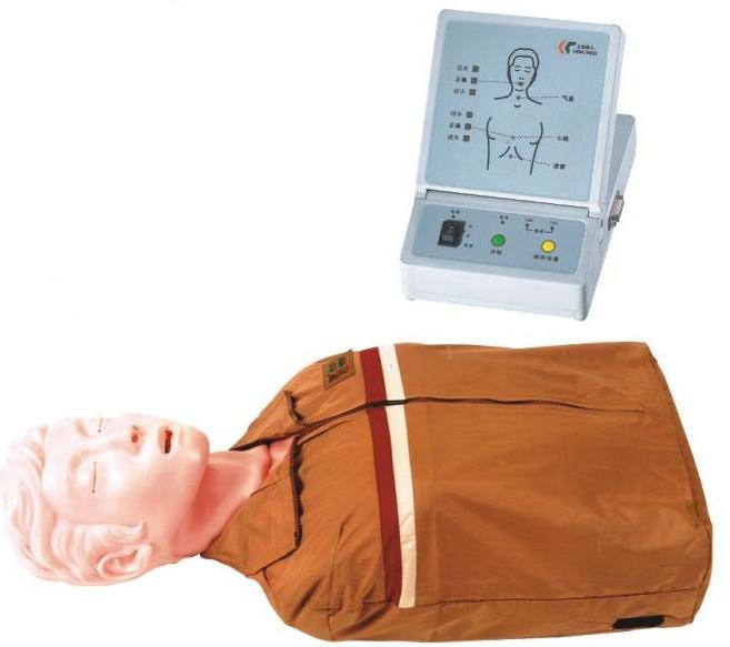 心肺復(fù)蘇,國際代稱CPR。在生活中,健康人由于心臟驟停(如觸電、溺水、高空作業(yè)事故、交通事故、旅游意外、心臟疾病、心肌梗塞、自然災(zāi)害、意外事故等所造成的心臟驟停),而必須采取胸外按壓、人工口鼻呼吸、心內(nèi)注射、氣道放開等搶救過程。使病人追短時間內(nèi)得救。在搶救過程中胸外按壓位置,按壓強度是否正確,人工呼吸吹入的吹氣量是否足夠等規(guī)范動作是否正確,是搶救病人是否成功的關(guān)健。因此,在系列搶救過程中,必須要掌握心肺復(fù)蘇技術(shù)。模擬胸外按壓、人工呼吸、心內(nèi)注射、頸動脈模擬搏動、瞳孔由一只散大與一只縮小的比較認識,達到掌握操作訓(xùn)練心肺復(fù)蘇術(shù)的基本要求。對操作正確與否,有光電信號顯示、數(shù)碼顯示等功能,它是訓(xùn)練搶救人員進行心肺急救技術(shù)訓(xùn)練的要求的模擬機。